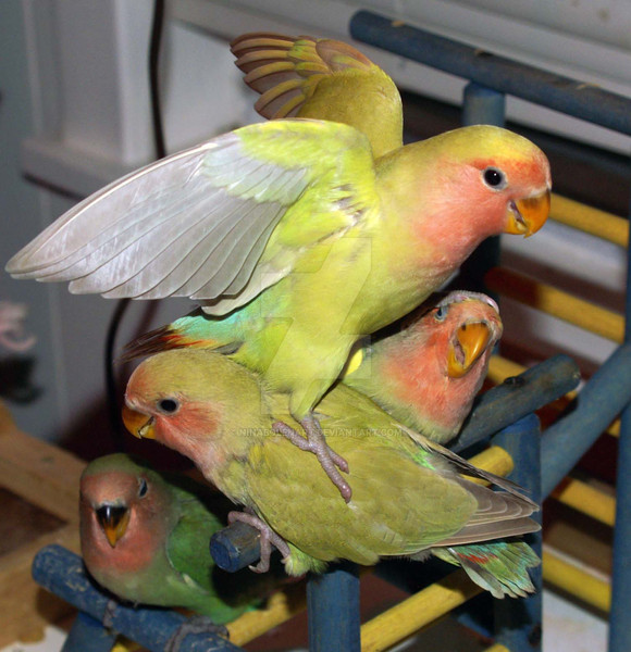 lovebird. We use to have teo but the girl was a bitch to the boy. She always beat up on him.