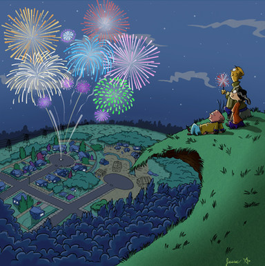 Download for full size.The Eds enjoying the dance of fireflies.Well,except for Eddy.
