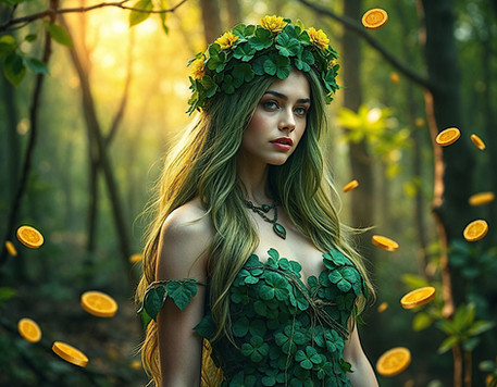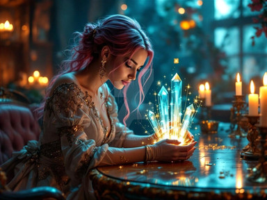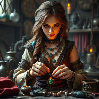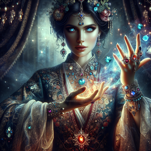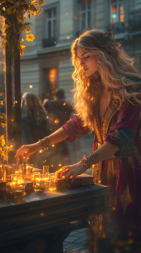 Sensory experience: a Society of Sensation muse in a flowery gown, eager to record a new sensation stone.