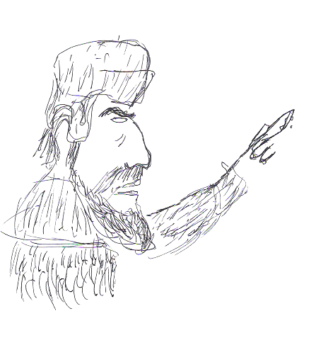 Joseph Stranger, one of JohnDoe's characters.He was a lot of fun to read. Here he is, in his first appearance, with his beard as bushy as a kensha's tail, seeing his reflection on a silverware he had placed on the wall of the burrow.