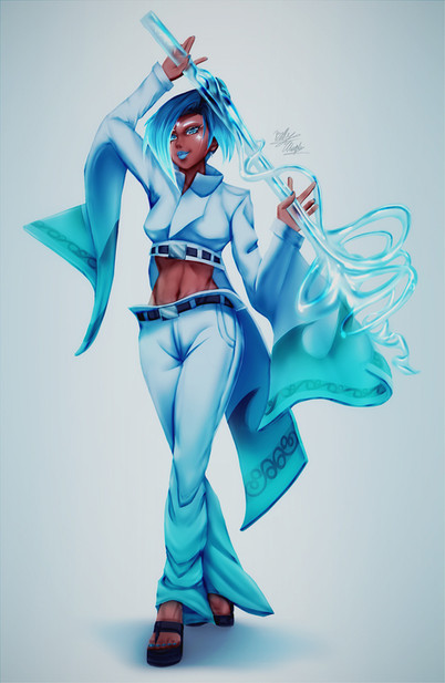 At the end of the year I participated in a secret friend, where I had to draw a character from another artist, and vice versa. This lady in the ice is Miss, character from a future project of a friend.