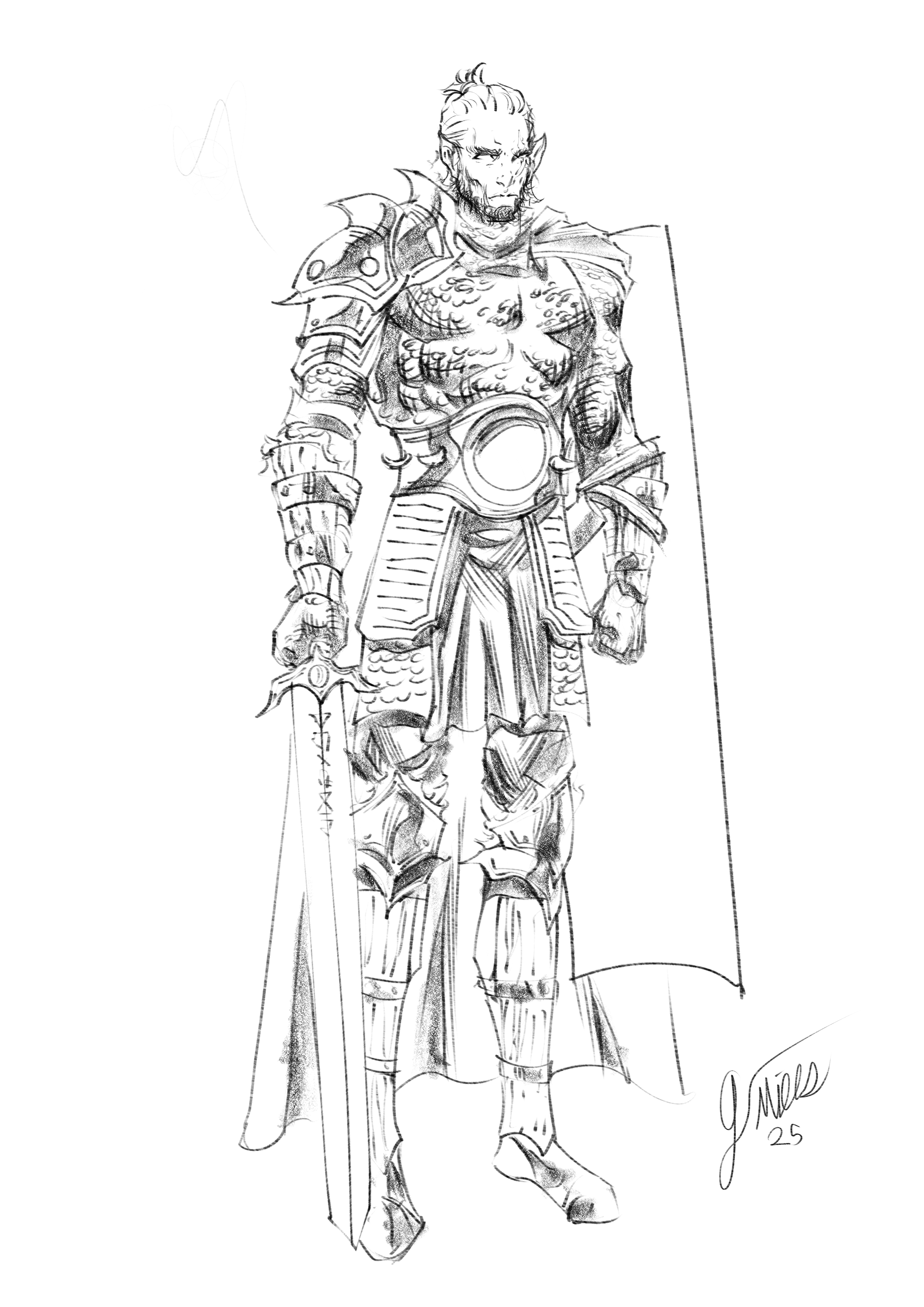 #characterconcept #fantasycharacter #fantasyart #conceptart #sketch #warrior #characterdesign #animedrawing #bookillustration #fighter #lineart #sword #clipstudiopaint