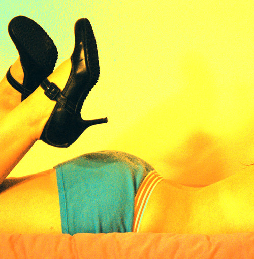 This has a great retro feel to it. The lines all lead to the right places, it looks great! I would like to see the tip of the heel on the shoe. The underwear is a bit too bunched on the hip, that is a fairly simple photoshop fix.