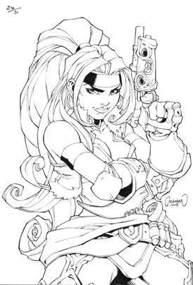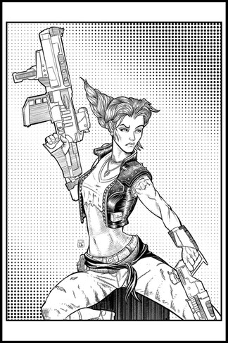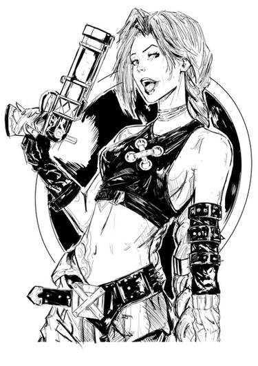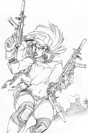Wow! This is really nice! I love the way you drew her hair and the gun.