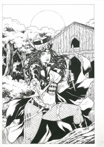 Ok, so here is the scanned inks of my daughter's first ever inked page! She is 12, but has been helping me on pages and trying her own inks for a few years now. She never finished a whole page until now.AllPat Β Alan Patrick made the very cool cover art for Zenescope a couple years back.