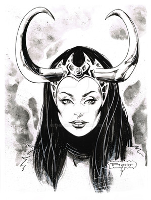 Well, here is the scanned page of my inks over AberrantKitty Collette's awesome lines of Lady LokiThis was a blast to work on! Always trying to improve my hair game...happy with the way this came out.