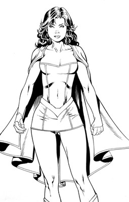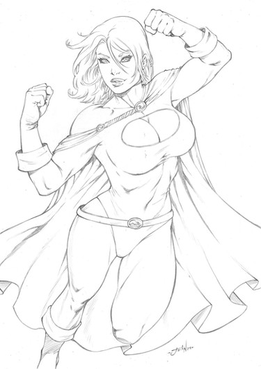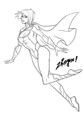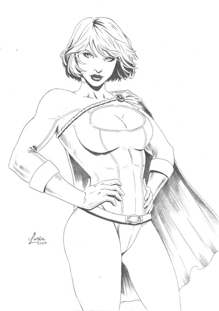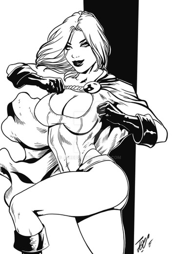 Beautiful lines by www.deviantart.com/luisxiii-ar… again.... Love Power Girl!Was sitting on back deck with a cup of coffee and an iPad on my lap. Fast digital ink practice.