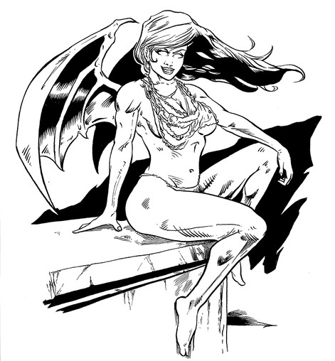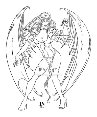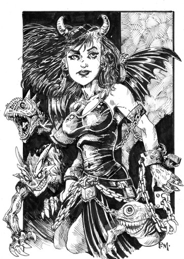 This was a convention sketch of a game character...? That's what's listed in the details over on RandyGreen 's page. Nothing evil to see here! (I hope!)Just a fun nib inking practice this evening. Working with real ink looks so much more amazing on a finished page! But so friggin hard to make smooth curves... so had to cheat with some worn out microns and curvy rulers