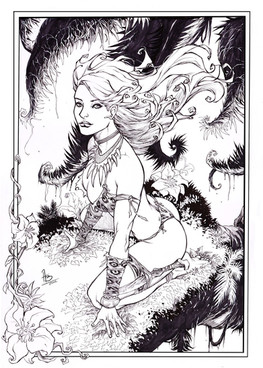 ebas Eric Basaldua made the awesome lineart of this sexy vixen. She is cleaning up after a hard fought battle...I love Eric's lines and it is always a pleasure to have a chance to ink them...so when SeanE posted his journal looking to get them inked....well, I couldn't resist