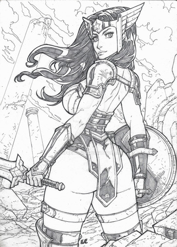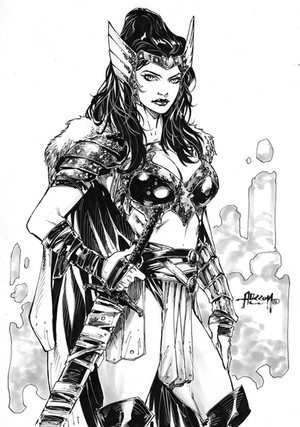 Collette AberrantKitty made the very cool Sif lineart of this one. We met at the Calgary Con a couple months back and I was very impressed with her art. Thankfully she liked my inks, so we decided to collab on some thingsThis being my first time to ink her art. I really enjoyed it. I really dig how she draws faces; as that is something I tend to focus on in my inking. So, hopefully you guys like the results. It's not perfect, I know, but I like it