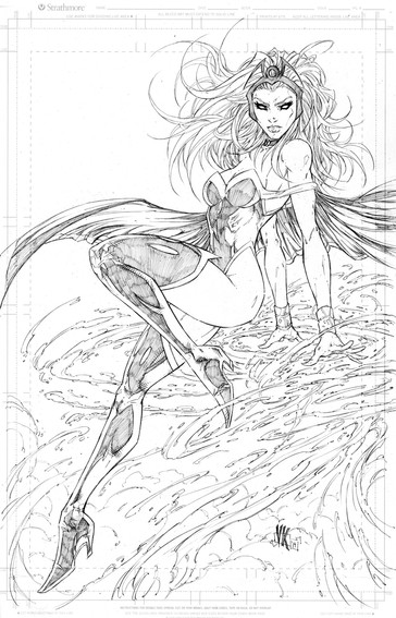 Well, my hand is still numb from the Alien page, but I just wanted to ink something fast and easy tonight. You all know I love KR's (Kenneth Rocafort) lines...found this teeny file and had a go.It was so low res that I couldn't even see the detail. inked this with a .1 pen while watching an episode of The Walking Dead on Netflix!