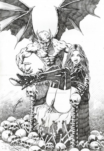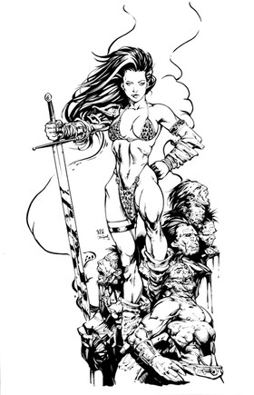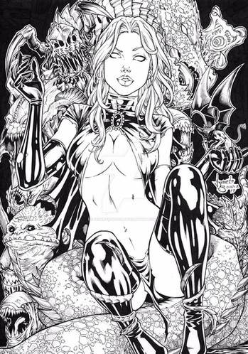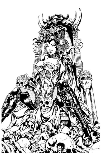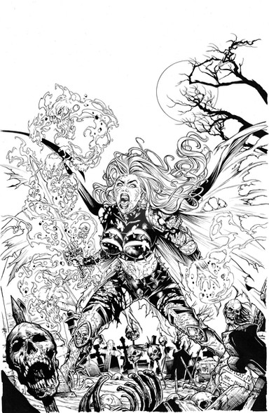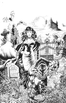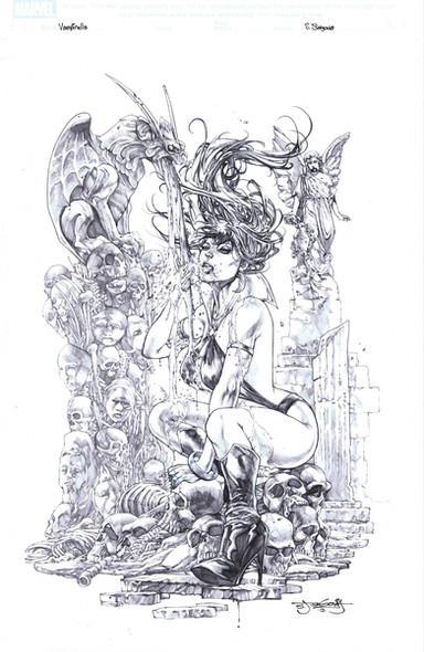 Stephen is a phenominal artist and made the spectacular pencils of Vampirella...I don't know what insanity possessed me to ink this...Stephen's lines and detail are fantastic! I don't think justice was done by me, but I definitely pushed myself to step up to this.