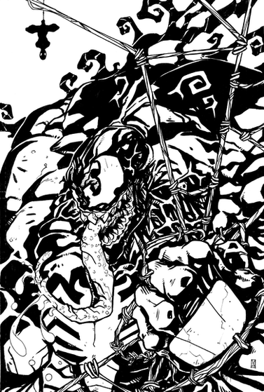 Sandoval-Art Gerardo made the killer Venom lines of this one! I really am a huge fan of Venom and really digged the lineart, so thru myself into it!I went to the wrong art store today, so didn't get my white ink I needed...had to leave a few things I wanted to fix