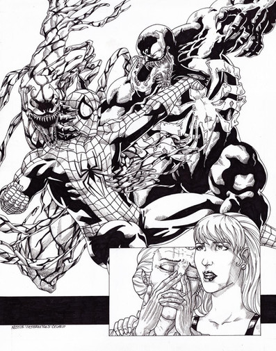 Brilliant work with the inking! I like the shading on Venom (everything else is good to, but it's easier to see how you shaded Venom), with the blocks of black trimmes with the parallel lines.