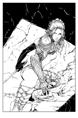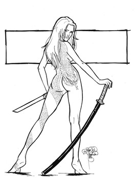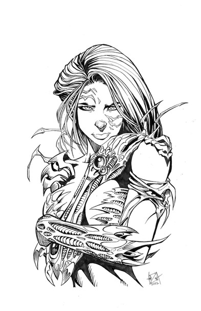 As most of you know....I love Kenneth Rocafort's linesHe made this Witchblade pin-up a couple years ago, but I felt the urge to ink it tonight. Used a .1 Micron on this.