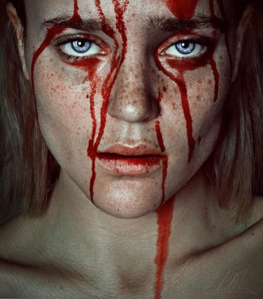 intriguing image. Dirty skin and direct gaze and position of hands, makes one want to know more of what might be going on. Battle victim? Refugee? Abuse victim? Play in the mud fanatic?