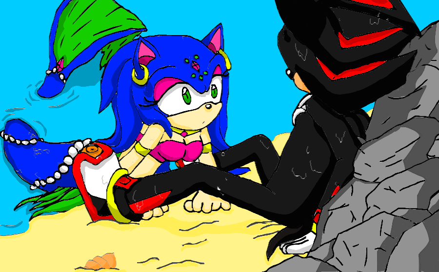 Made with deviantART muro This is a pic of Shadow the Hedgehog meeting the Merhog Princess Sonikku after being washed up by the ocean. Hope you enjoy!! Base is by [link] Please Comment!!Related content