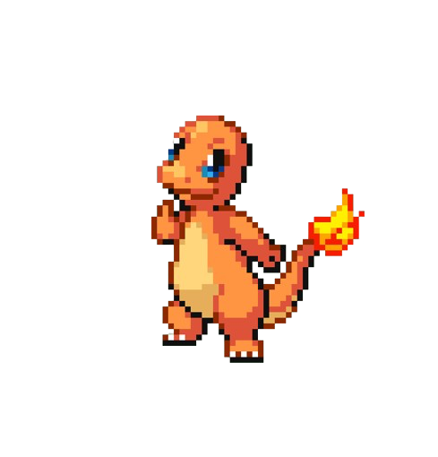 Charmander is a small, bipedal, dinosaur-like Pokemon. Most of its body is colored orange, while its underbelly is a light yellow color. Charmander, along with all of its evolved forms, has a flame that is constantly burning on the end of their tails.