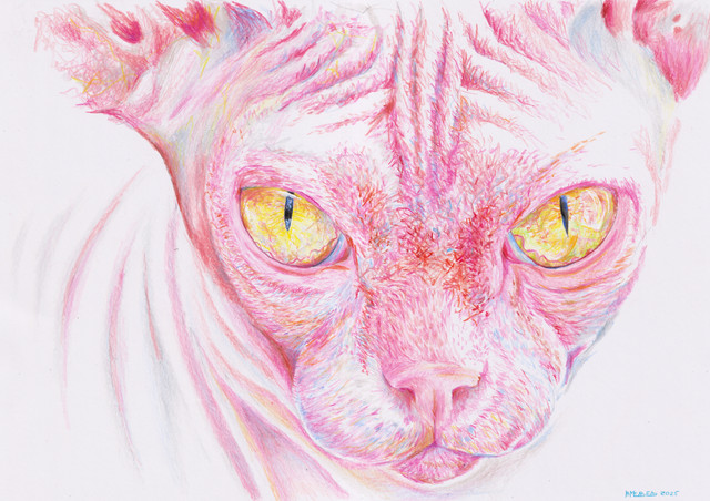 #digitalart #portrait #digitalpainting #cat #feline #animal #kitty #animalart #catus #felis #greeneye #greeneyes #neko #pink #sphinx #dailyart #sphinxcat #daily_popref