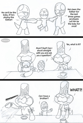 Maybe i will color it later.Just a quick headcannon that Beck likes to randomly copy his simblings actions, cute, but not always a good thing, since the Mighty numbers doesn't have this 'behave in front of your younger brother' rule. You can already see the disasters this can cause.