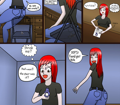 Looking back on Roxies personality youre right: shes tough, not a bully. Maybe that would be a good follow up of this comic. Where cindy find and starts having fun with shrunken nat and vic, but polly shrinks her with the machine and then Roxie cumples cindy into a spitball to shoot out the window or something