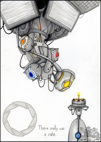 Can you spot Chell? LOL I kind of was a little lazy drawing her since you can't really see her but as long as the rest of the picture looks great, right? Ehh . . . I think I was also lazy on coloring the whole thing anyways but whatever XD