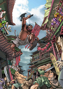 Beautiful architecture as always, lovely posing of figures especially the mid-air tornado-of-death with ribbons.