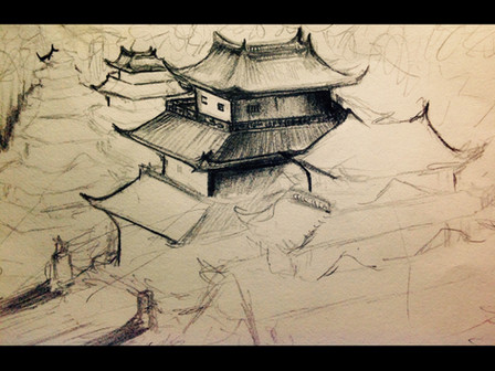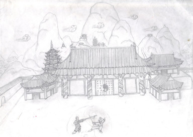 I am trying to put a book together. How much will it cost me to have you draw me a Shaolin temple on top of a hill? I want it to be based on the actual Shaolin monastery in China, but a bit bigger. It doesn't need to be colored. Black and white is fine.