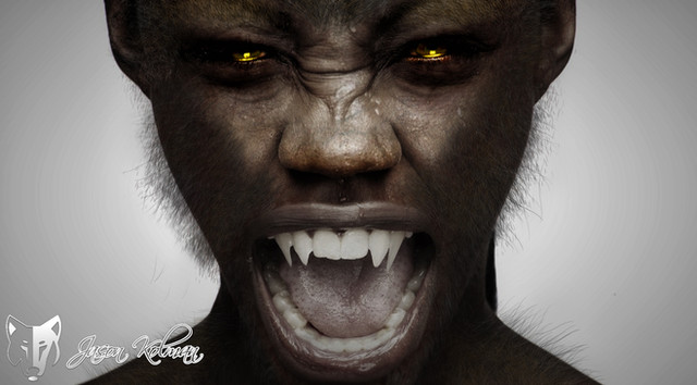 Illustration painted exclusively with standard brushes, using several layers to the tones of the skin, gums and tongue. Broken veins on the cheek and the tear were also painted on separate layers to play with the opacity and intensity of tones. The tear and heartbreaking gesture represents a painful transformation and a silent scream. Painted in Photoshop CS3 and CS5, this image is my first work entirely realized with the new Cintiq 24HQ.See screenshots of the process: [link]