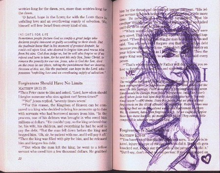 That's hot. I love it. I'm always weird about drawing in books, but that adds to the ... wrongness of it. Love.