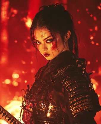 TheBlackPantherXXX - Samurai, Girl, Fire, Digital Art [🤖]