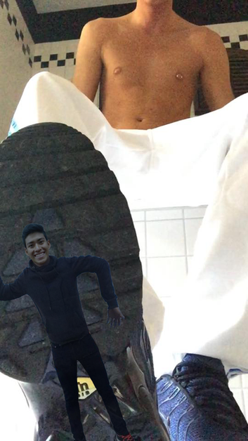His friends, too, want to join in on the humiliation. They position their dominant feet, mere inches from reach. Flattened, crushed, but still conscious, Matt can only listen to the giants’ taunting and belittling. Such is the inevitable fate of a tiny: crushed into submission.