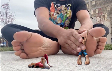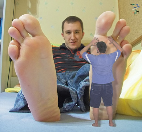 Inexplicably shrunken to half his normal height, Matt could not resist his masterβs ginormous, bare soles and toes. The taste, the smell was all too irresistible, and Master Jace knew just the place where his submissive, foot slave belonged. With one foot resting on the Mattβs leg, Master Jace forced him to spread his bare toes for the camera and humiliate him for all the world to see.Master Jace: All right, spandex boy, spread those toes far and wide. I want my online fans to envy your predicament.