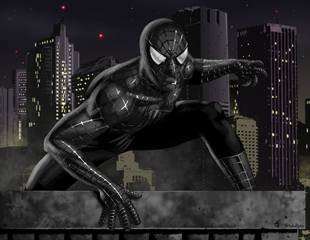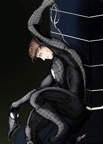 ..and i've joined the hype! haha. ive seen lots of spidey artworks lately so i just can't help it!guess who? its spiderman in black venomous suit. this just a fanart of sony pictures' spiderman3. i originally painted spidey upside down haha but i felt awkward wit the pose so i rotated it instead.
