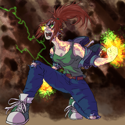 Ich find es genial, wie die Mimik bei deinen Zeichnungen rüberkommt, das fällt mir immer noch vor den Posen und dem Farbschema auf. Ganz zu schweigen davon, dass sie nach einem interessanten Charakter klingt.