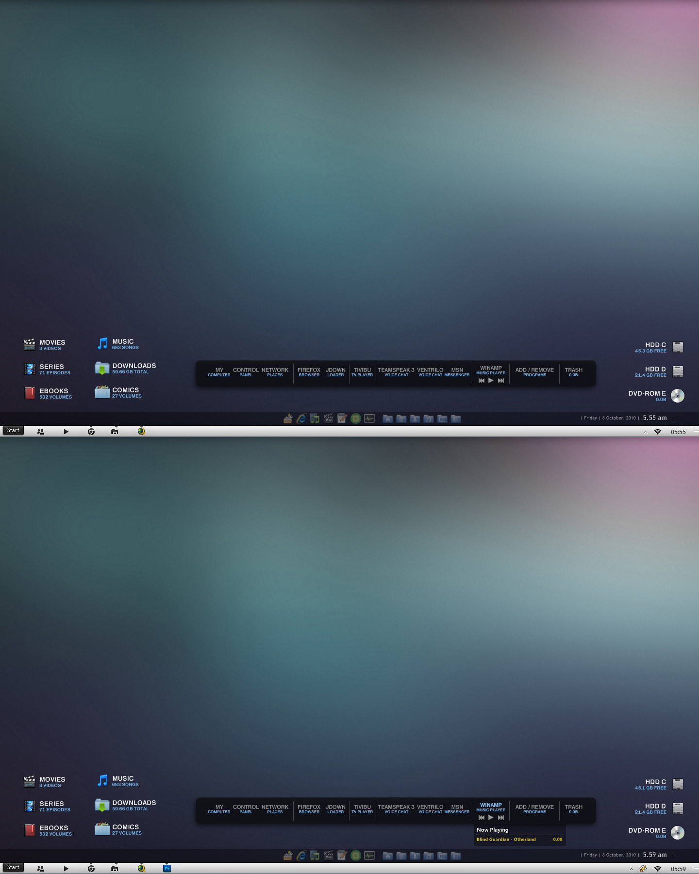 3/10/13 - Removed the old panel for the new one, removed window controls (min, max), bigger resolution, change action bar icons from Nitrux for newer revision, different background.
