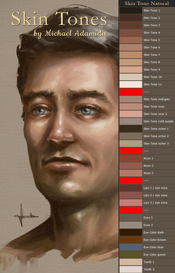 - each horizontal row is a skin highlight set of tones (meant to brighten and darken light touching skin in different compositions)