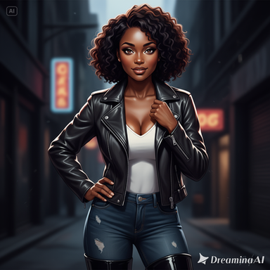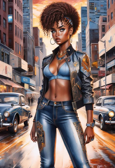 #digitalart #portrait #beauty #car #leather #african #black #girl #hot #leggins #modeling #shiny #tank #woman #top #pufferjacket
