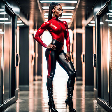 #photorealistic #beauty #glamour #dress #car #racing #black #catsuit #fetish #glossy #hot #milf #rubber #shiny #smile #woman