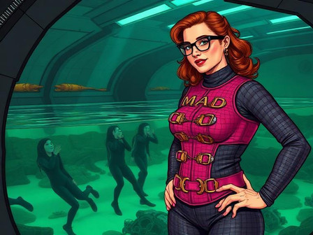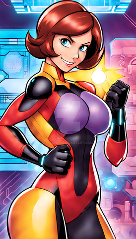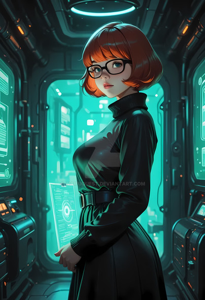 #fanart #cartoon #superheroine #scoobydoo #scientist #originalcharacter #catsuit #comic #girl #glasses #glossy #latex #mistress #nerdy #shiny #tubes #wetsuit #woman #rubebr