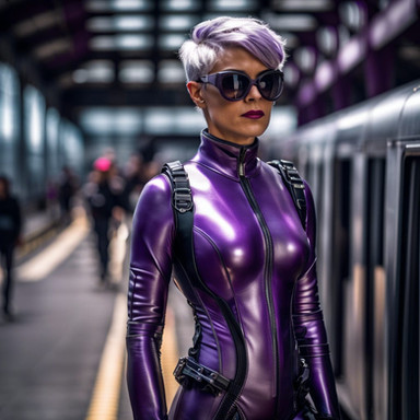 #beauty #photorealistic #wallpaper #scifi #cyberpunk #fanart #catsuit #fetish #glossy #hot #latex #rubber #shiny #traffic #woman
