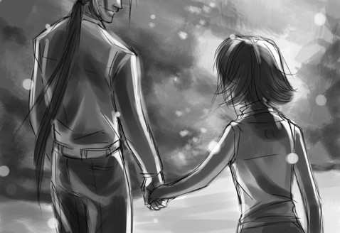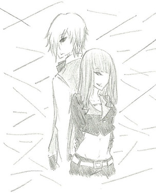 This is supposed to be a picture of Spirit Albarn, Aka Death Scythe and an OC [Frankie Albarn] created by Both and I... however more owned by her...Although.. it almost looks like it could be Maka too. LOL