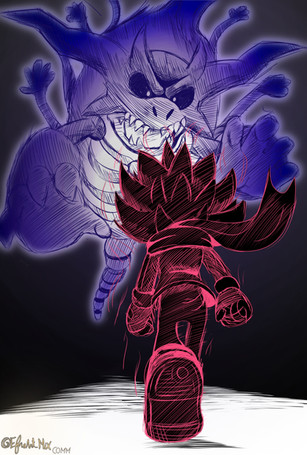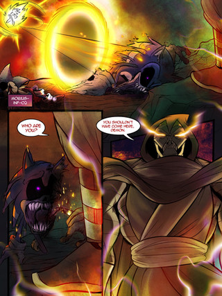 Redrew a panel as a warm up, had a fun time doing it despite all the hand pain I got as a result. I spent three days on this XD. Made him look weirder and more "misty" from shapeshifting. I also thought it was a very odd environment, it seemed like it was night out with the moon and stars, but it was super bright out, so I darkened it a bit, added a bunch more stars to make it seem natural to be lighter out. I'm hoping I can make my own comics soon, this was certainly a learning experience.Hope you enjoy!!
