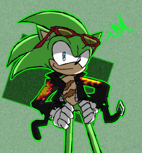 Never drew Scourge before, so I gave it a go. Lemme tell you, it was HARD ;-;. Given the fact that I struggle to draw Sonic's quills as is, adding a ripped leather jacket and sunglasses made me scream while drawing this 😂.What started as a quick doodle turned into a fully rendered drawing. I've betrayed any and all lighting techniques I learned and couldn't think of a background, so... hence this was the result.