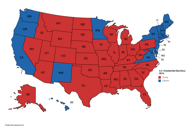 I have a feeling that Trump will appeal to the democrats who don't like Hillary. He's got enough appeal to make the difference. So a lot of those blue states will turn red.