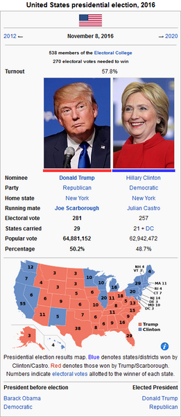 Seeing as its less than five months until the election I thought it would be good a time as ever to predict who will win become president. Originally I gave Hillary Virginia, but that gave her 53.92% and Trump only 49.08%. I felt it could of been more competitive, so now its less than 1 percent apart from one-another. Seeing as there are more registered Republicans than Democrats if Hillary were to win the GOP will demand a recount, mirroring the controversy of the 2000 election.