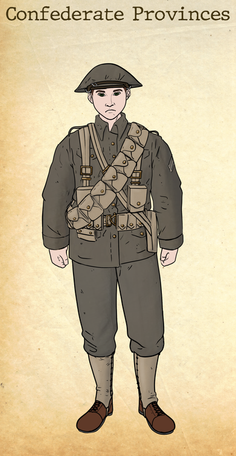 Foot Soldiers of the Gulf Military. Their uniforms are reminiscent to prewar confederate flags from the First Civil War of the 19th Century.After Hurricane Zeus in 2052 the Sovereign Watch took authority in New Orleans. Before the United States government could confront the rebels they were occupied with the Chinese and Mexican invasions.