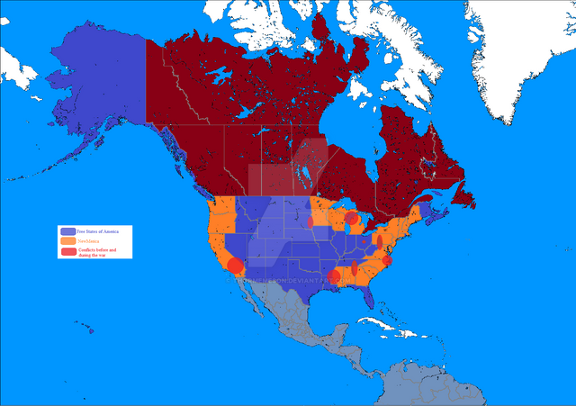 Not every state was keen on giving up their sovereignty. The territory of Alaska, separated from the continental United States by Canada, seceded from the Union and established the Free State of Alaska, or F.S.A, two days after the inauguration of the American State. The American State requested military access from Canada, but was rejected, as the Canadian Confederation supported Alaska's sovereignty and disliked the new American administration. After an embarrassing naval defeat at the hands of the Alaskans the American State resorted to a land invasion of Canada. The war ended in British victory, and the independence of Alaska in 1936. Alaska was granted a referendum whether to join the Canadian Confederation, but declined.