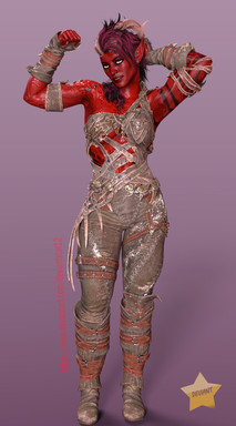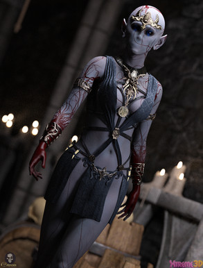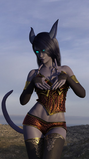 Base body genesis 8 female. work was mainly focust on texture and head so far i have decided to give her the more tiefling style body since it fits to the actual marks on the head and neck i will probably add the normal human like body also, las thing was the eyes i did, still a work in progress did not do much this week on daz at all. other things required my attention.Outfit was just so I do not have to age restrict the image