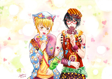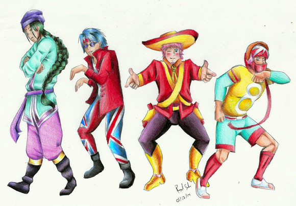 Saw this [link] a couple of days ago, and damn it's so fucking kawaii -- I can't.And the fact that the one in purple is a boy and was dancing with eggplants on his head made me think of Gakupo immediately. hfhkdshfksjdhf SO KAWAII.
